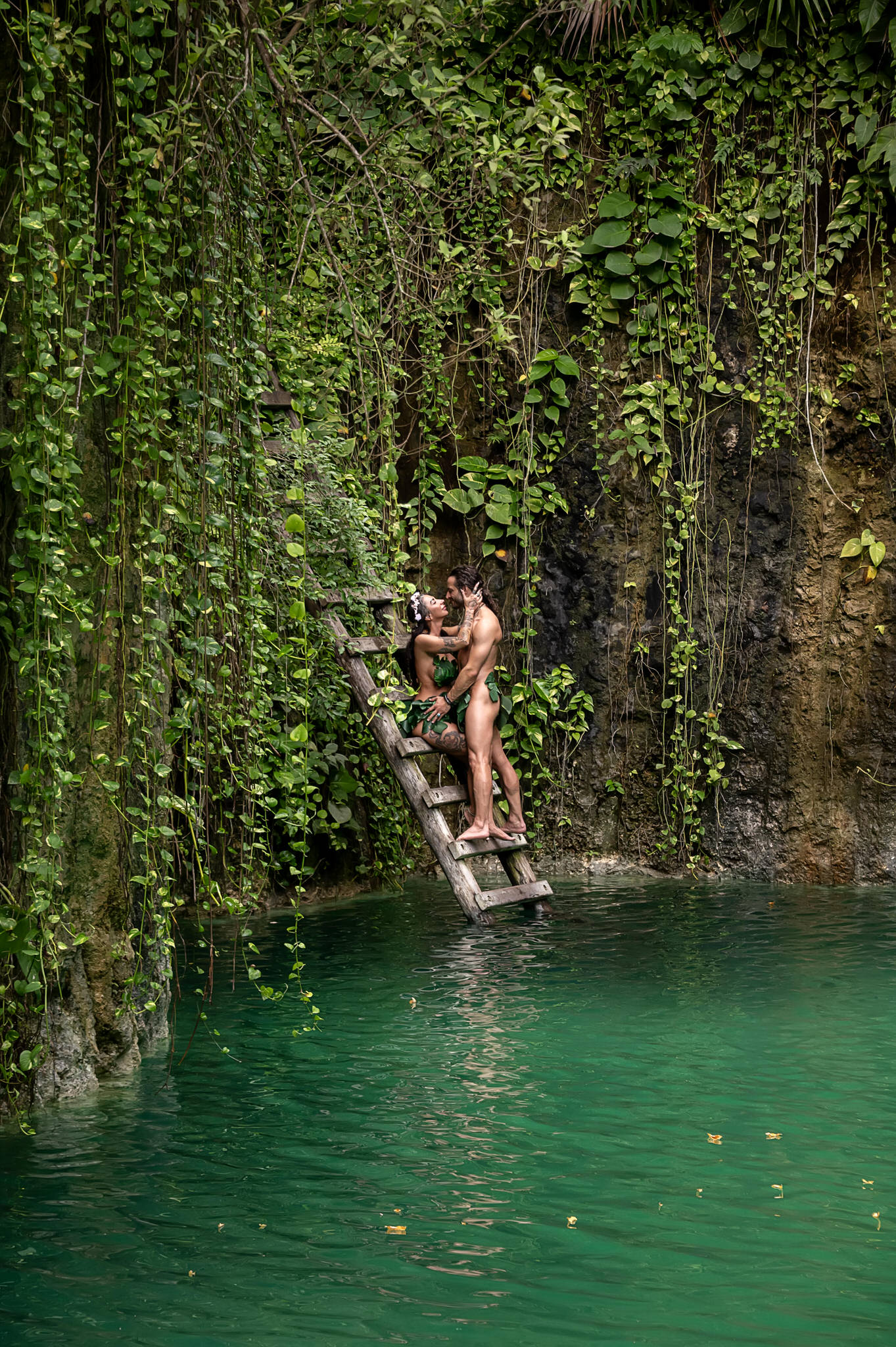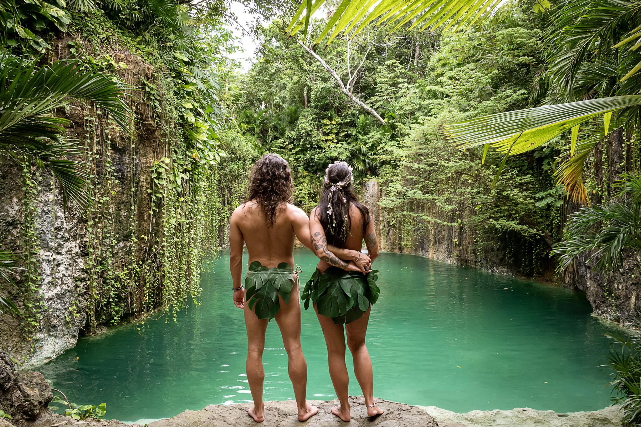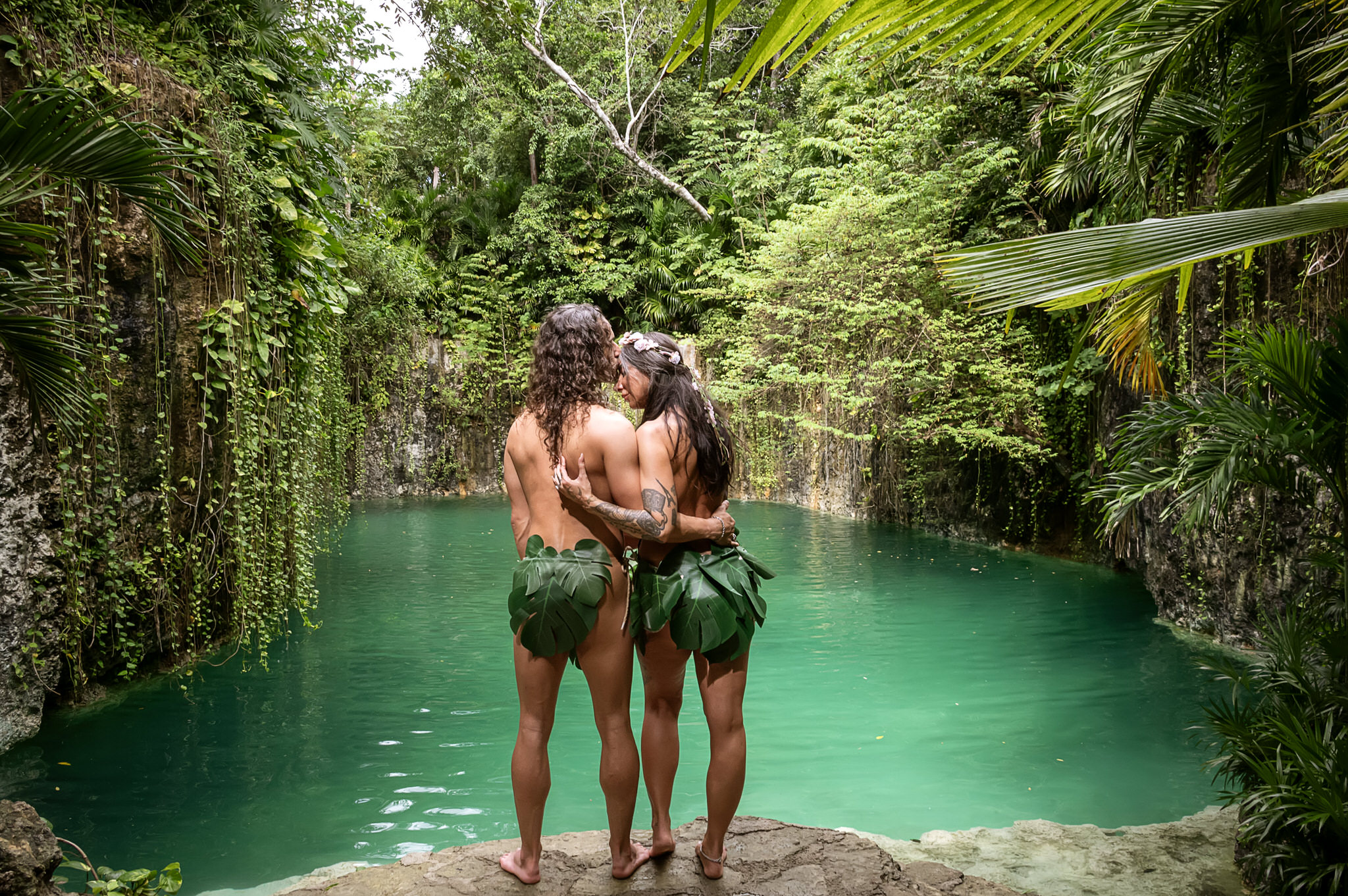 At Tulum Photography, we are drawn to clients with bold, creative visions. When Jamie contacted us with her extraordinary concept—a couples photoshoot featuring hand-designed Adam and Eve costumes at a private cenote—we knew this would be a session that celebrated artistry, storytelling, and the raw beauty of Tulum’s natural wonders in a completely unique way.