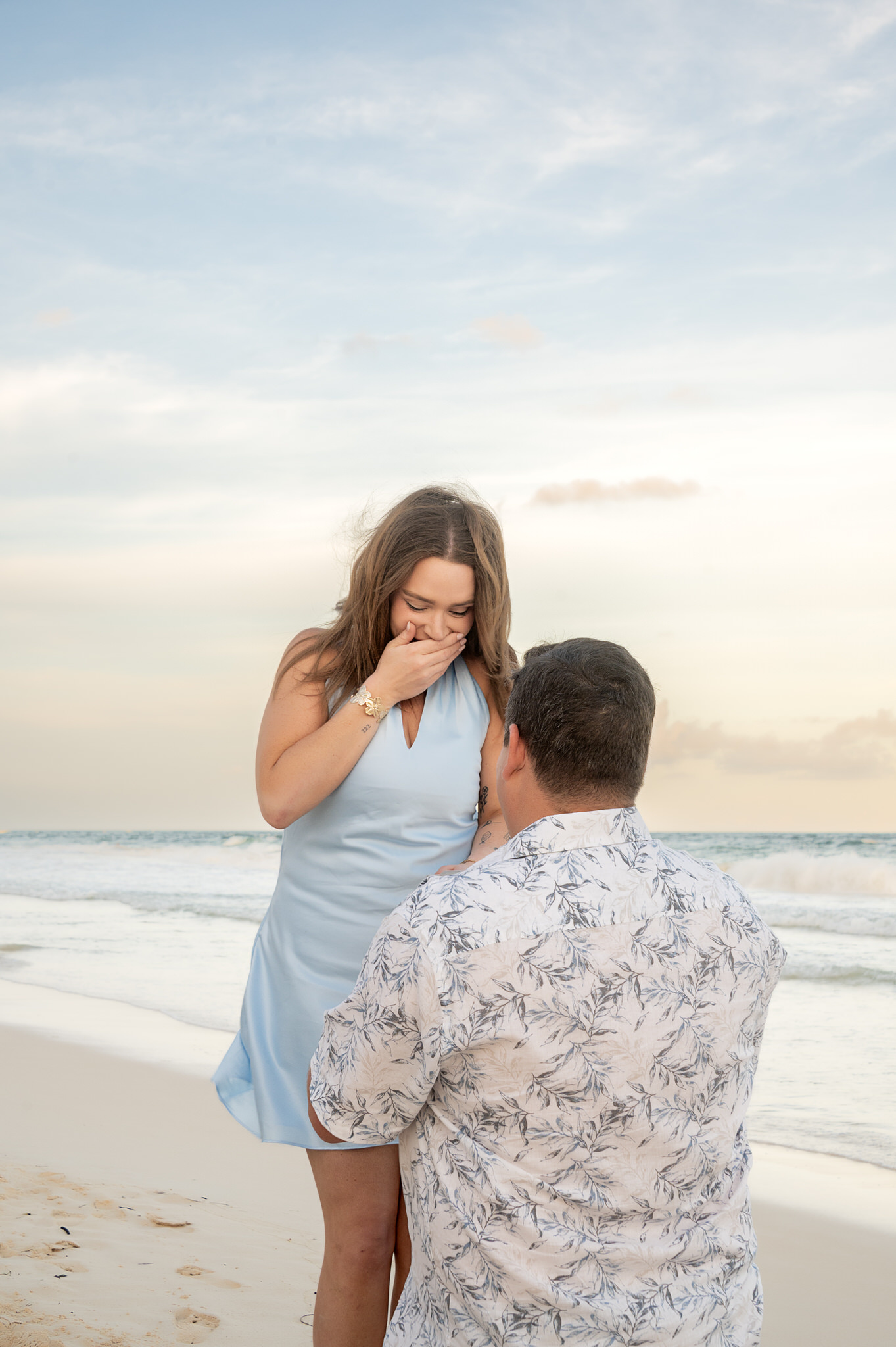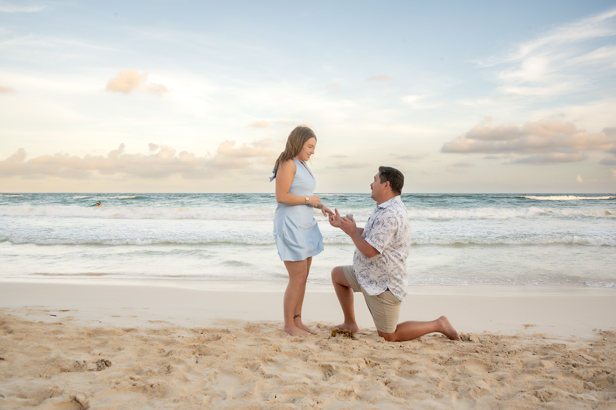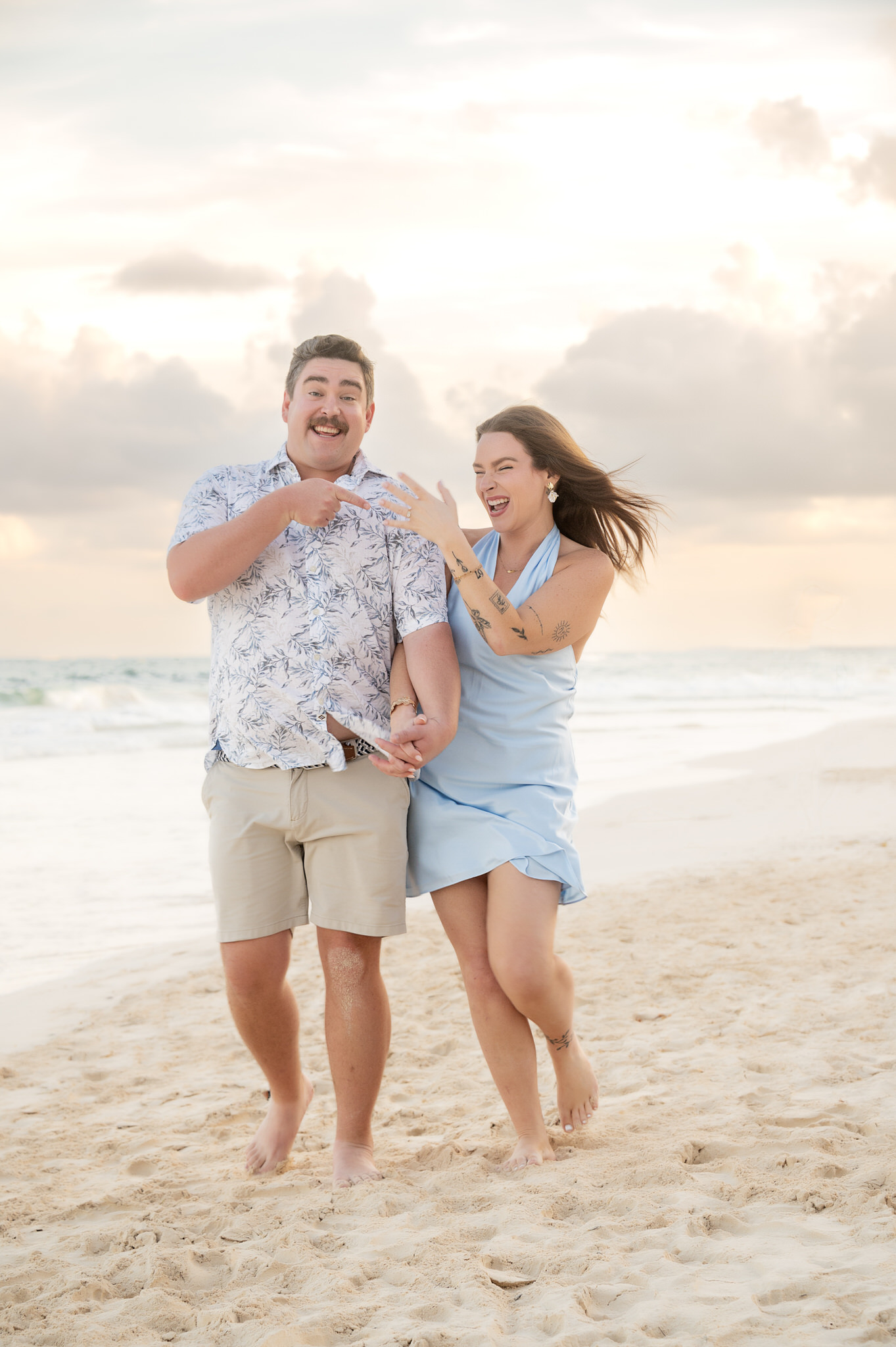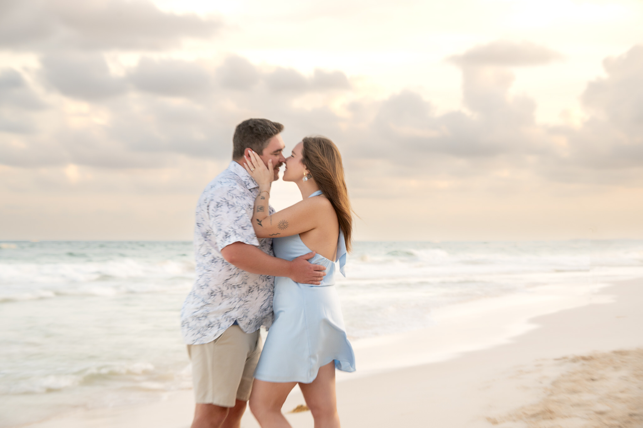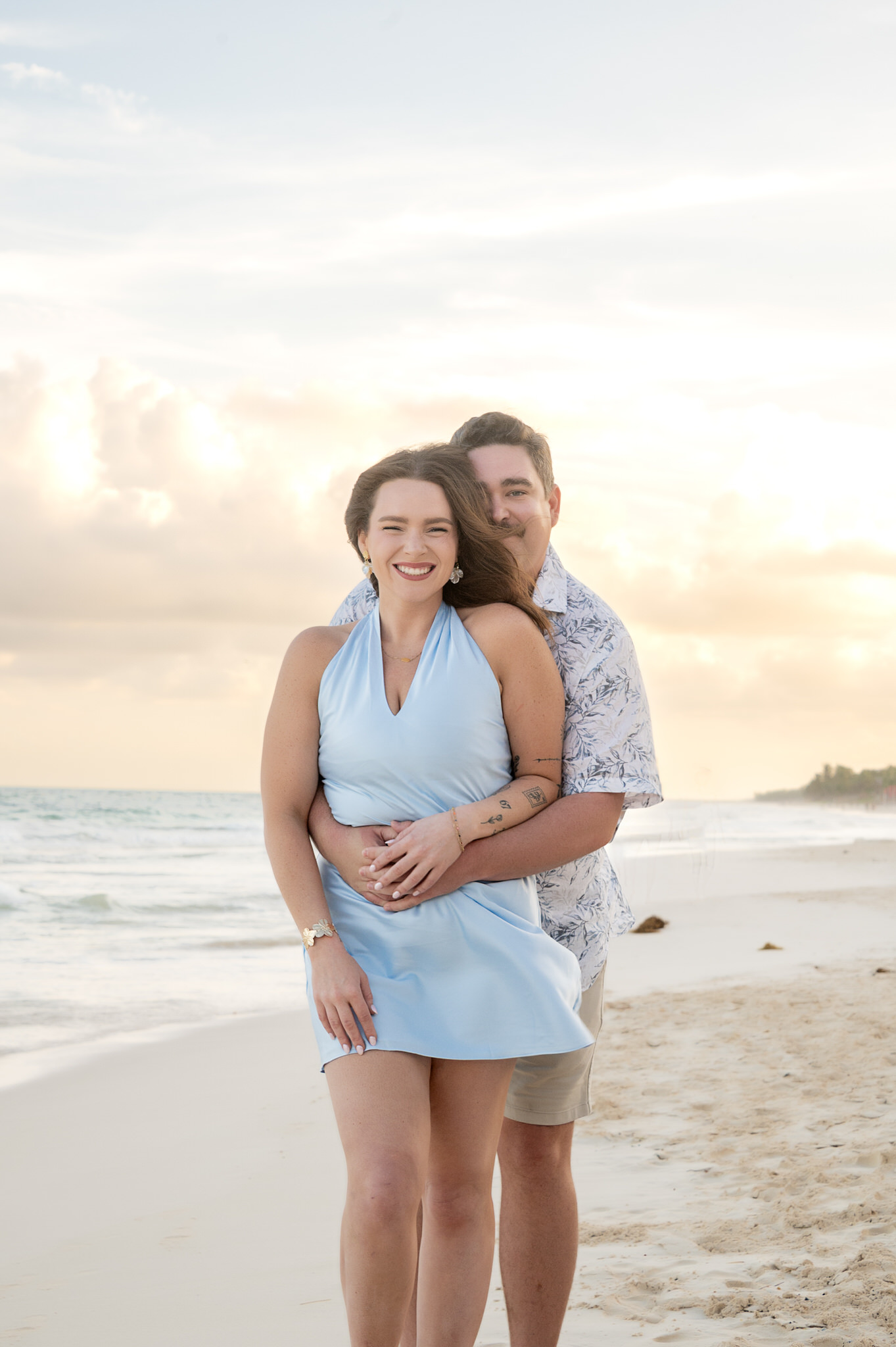 The session began like any other. We captured them laughing, walking along the water’s edge, and soaking in the stunning Tulum golden hour glow. The mood was light, playful, and full of affection. Then, halfway through, as Kennedy gazed out at the ocean, Max tapped her shoulder. When she turned around, he was on one knee. The look of utter shock, followed by overwhelming joy, was absolutely priceless. We transitioned seamlessly from “photoshoot” to proposal documentation, capturing every raw, beautiful second of their authentic engagement story.