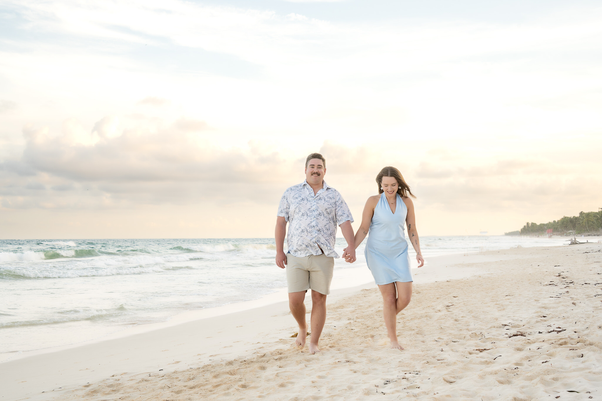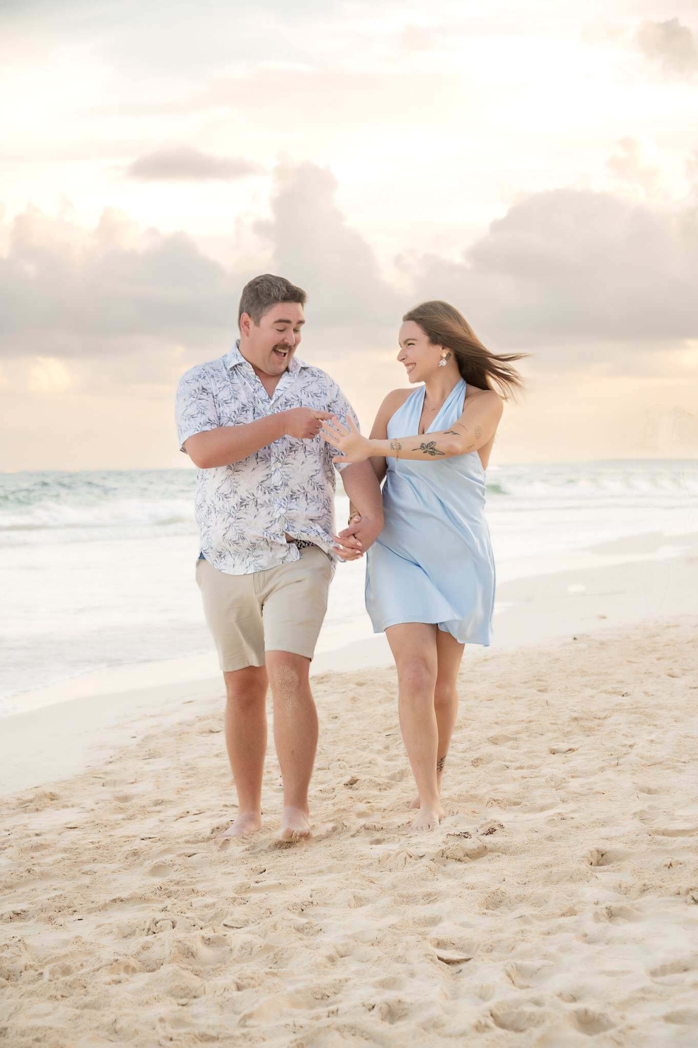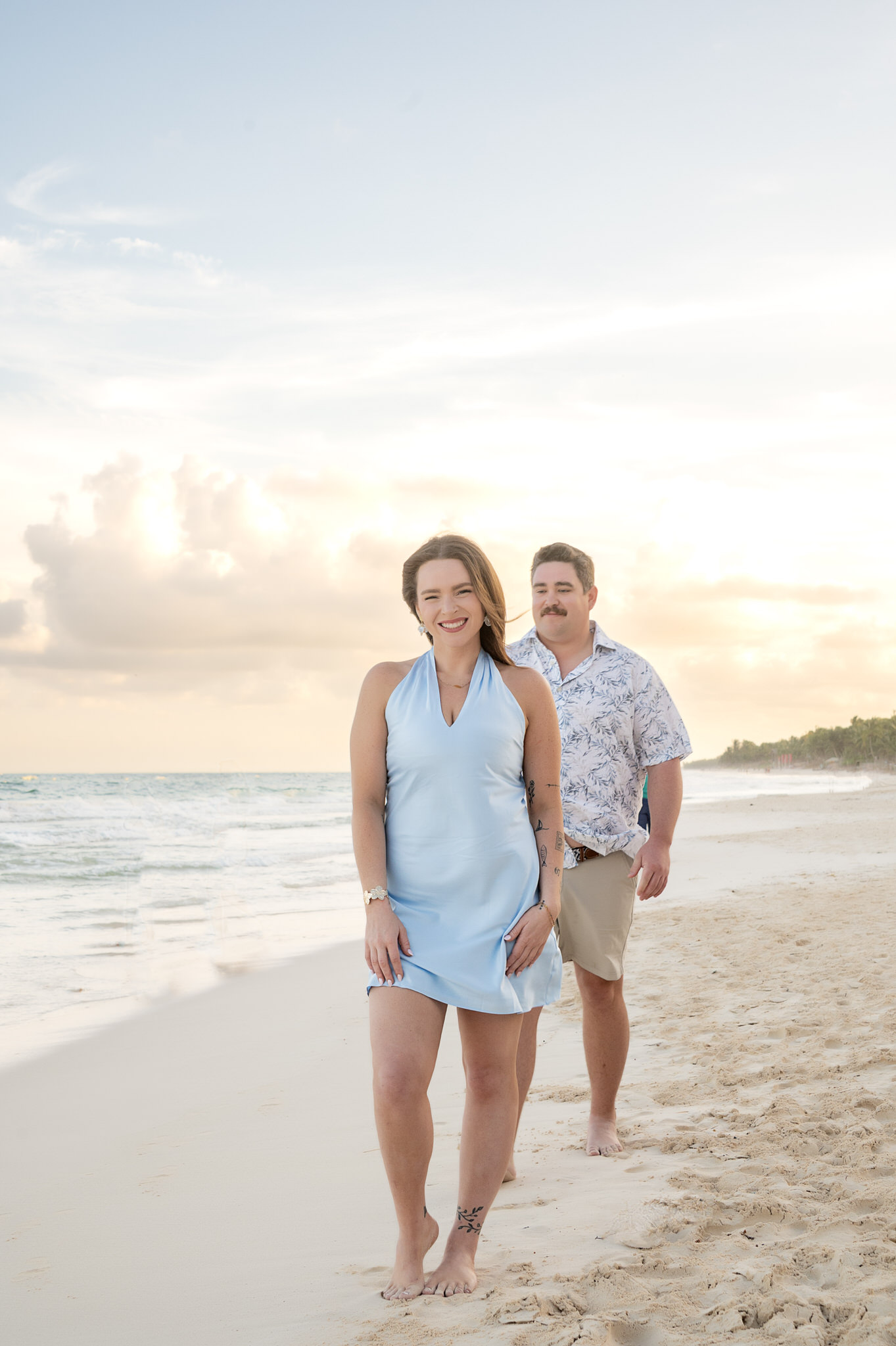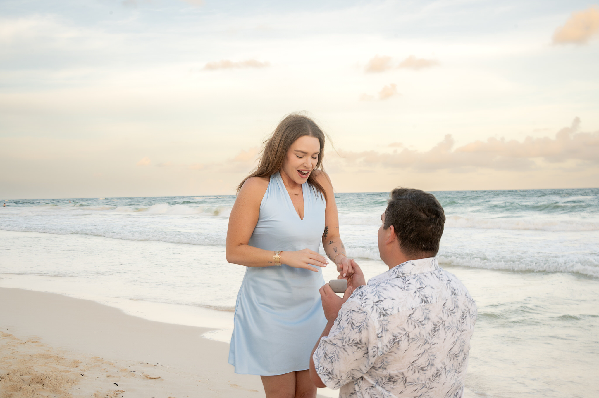 The session began like any other. We captured them laughing, walking along the water’s edge, and soaking in the stunning Tulum golden hour glow. The mood was light, playful, and full of affection. Then, halfway through, as Kennedy gazed out at the ocean, Max tapped her shoulder. When she turned around, he was on one knee. The look of utter shock, followed by overwhelming joy, was absolutely priceless. We transitioned seamlessly from “photoshoot” to proposal documentation, capturing every raw, beautiful second of their authentic engagement story.