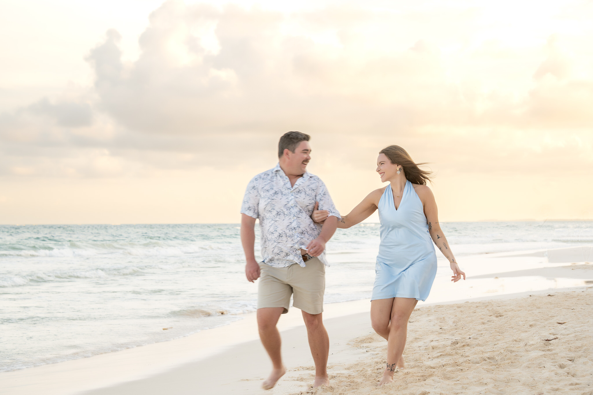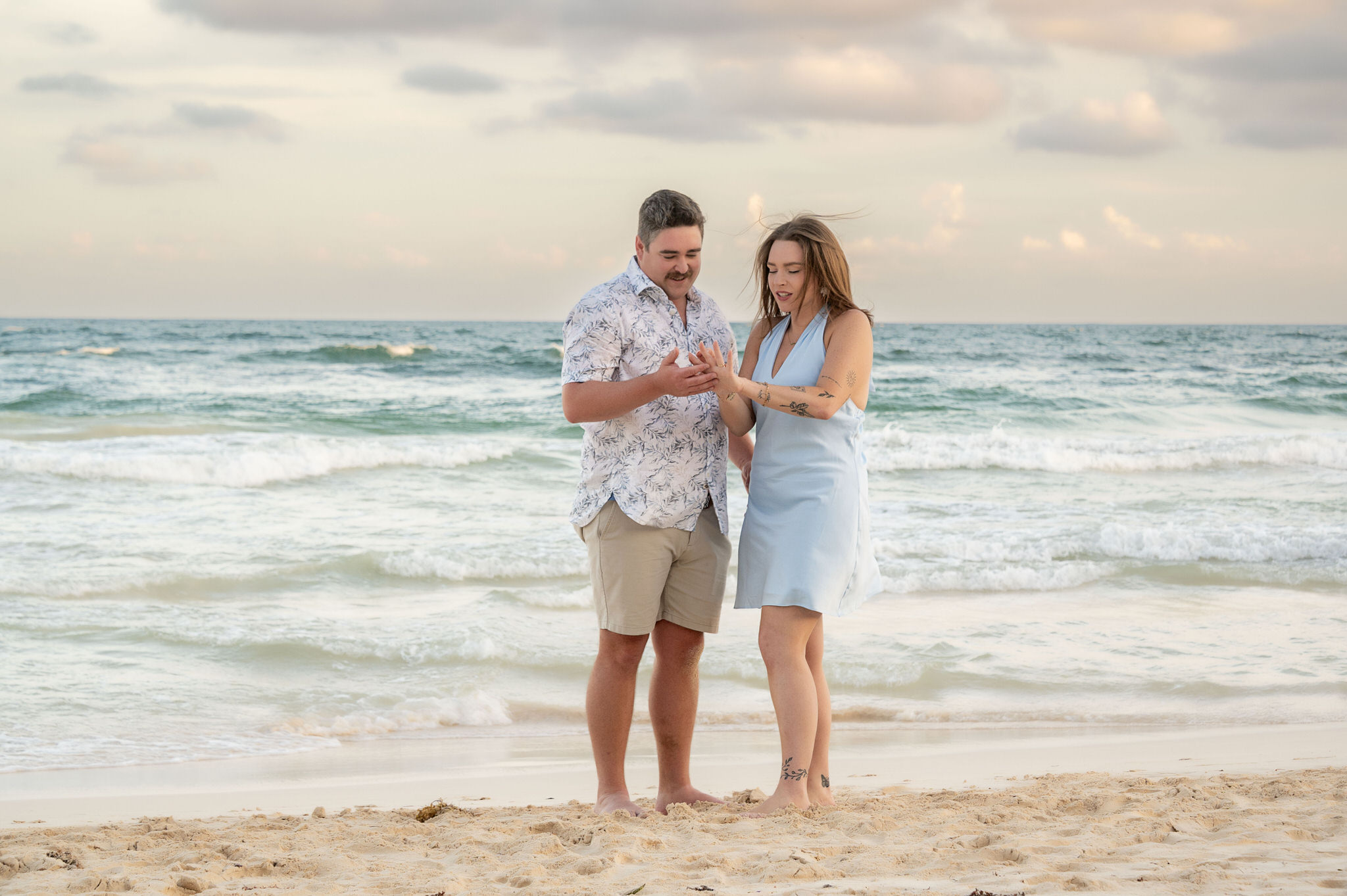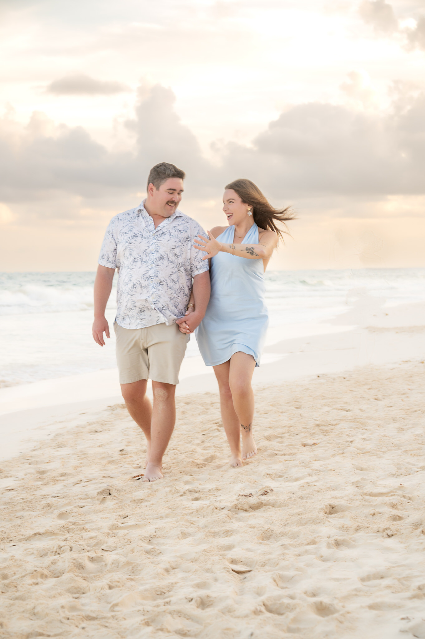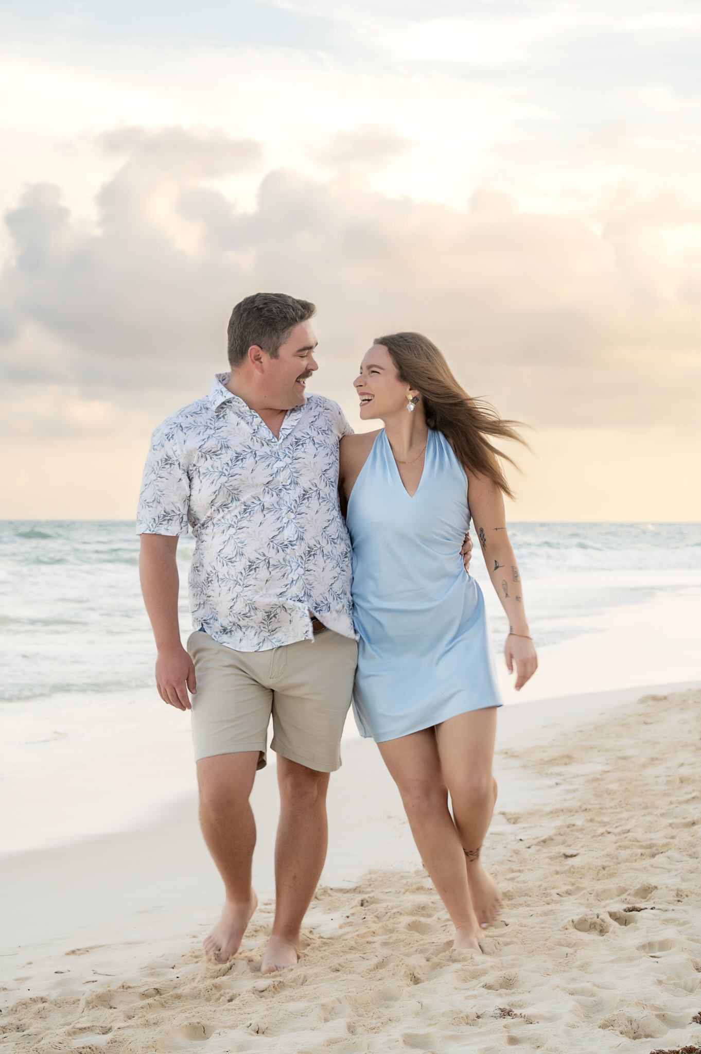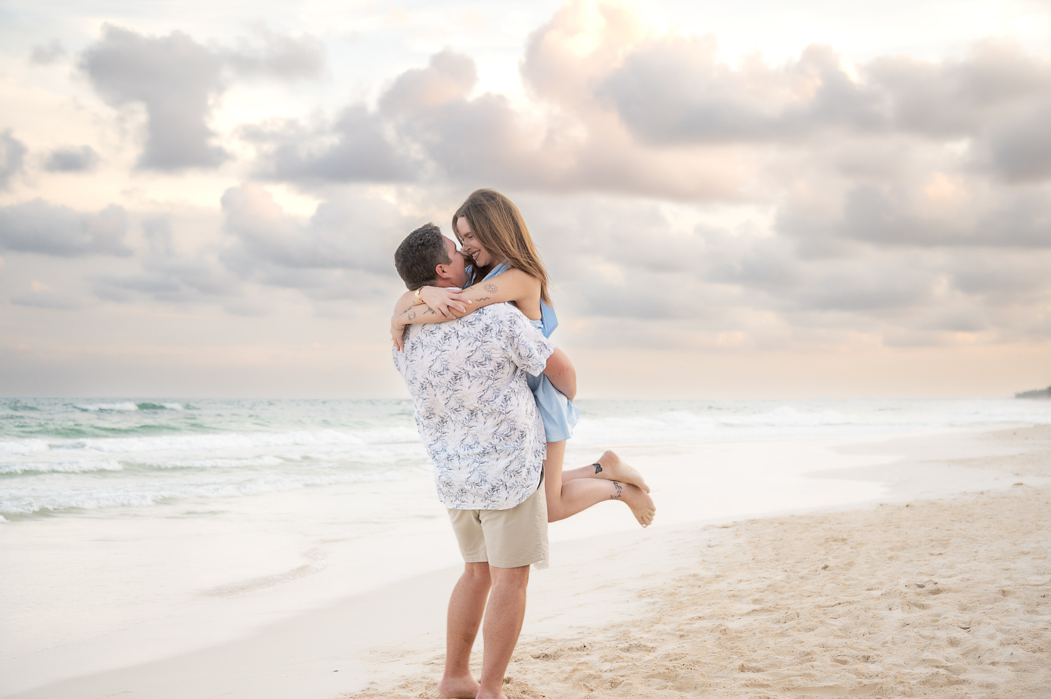 The session began like any other. We captured them laughing, walking along the water’s edge, and soaking in the stunning Tulum golden hour glow. The mood was light, playful, and full of affection. Then, halfway through, as Kennedy gazed out at the ocean, Max tapped her shoulder. When she turned around, he was on one knee. The look of utter shock, followed by overwhelming joy, was absolutely priceless. We transitioned seamlessly from “photoshoot” to proposal documentation, capturing every raw, beautiful second of their authentic engagement story.